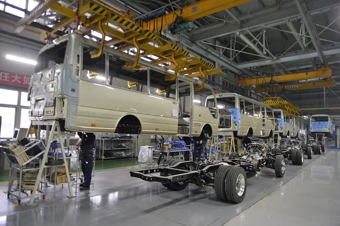 宇通把“机器人”也引入了焊装车间。通过建立小—中—大分片的柔性焊接加工模式,分别在半成品、焊装和底盘车间布局标准站、中型站和大型站三类机器人自动焊接工作站进行对应性加工,实现车身骨架全流程自动化焊接。