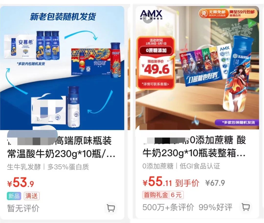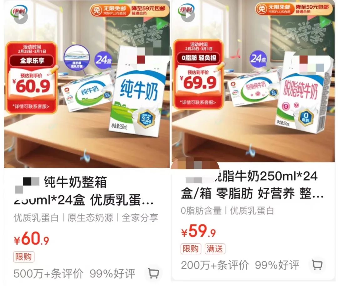 相比全脂奶,脱脂奶还是一个小众品类、市场不大,所以针对脱脂奶的物流、营销费用,平摊到每盒脱脂奶上都会贵一点,这个单就让消费者买了。
