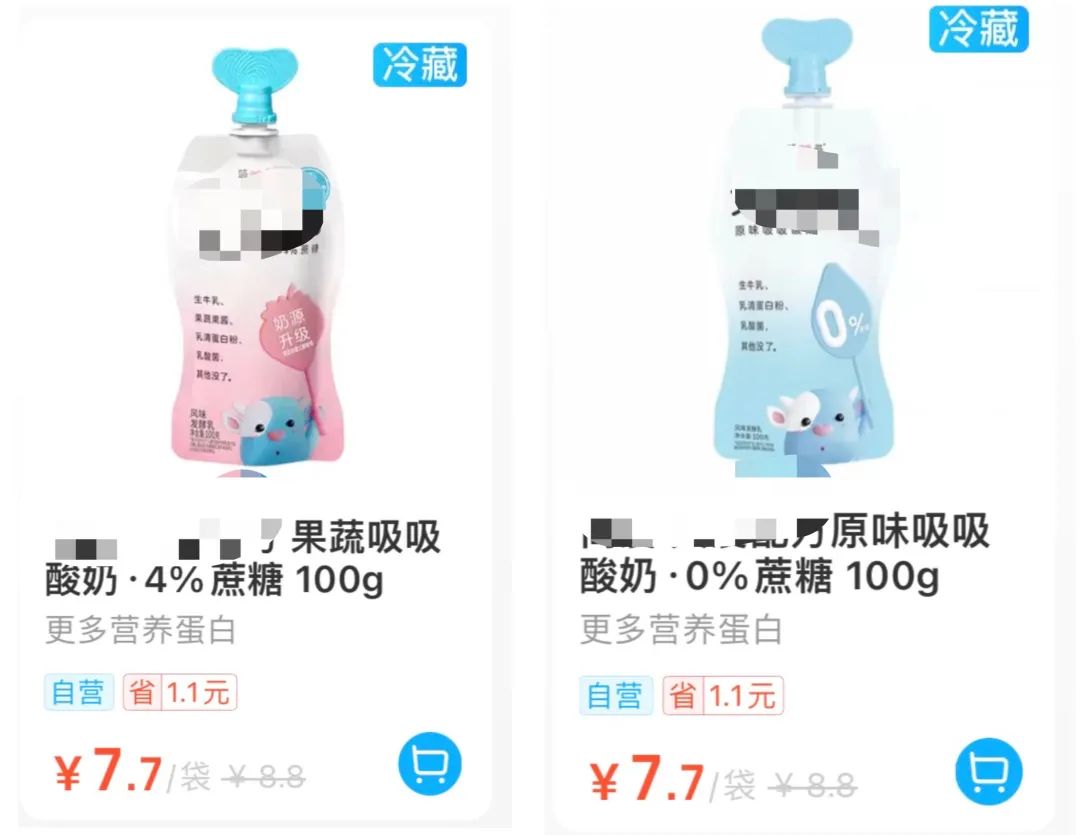 几乎只有含糖量差别的同款酸奶,无糖版和含糖版价格相同