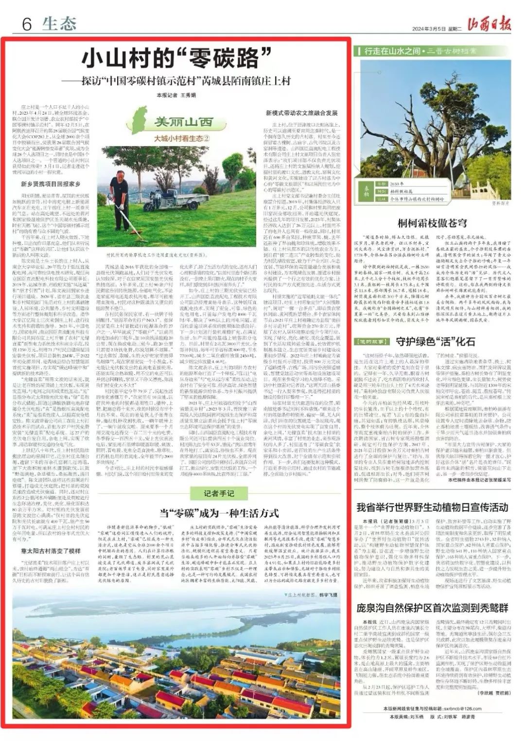 山西日报 2024年3月5日 第6版小山村的“零碳路”