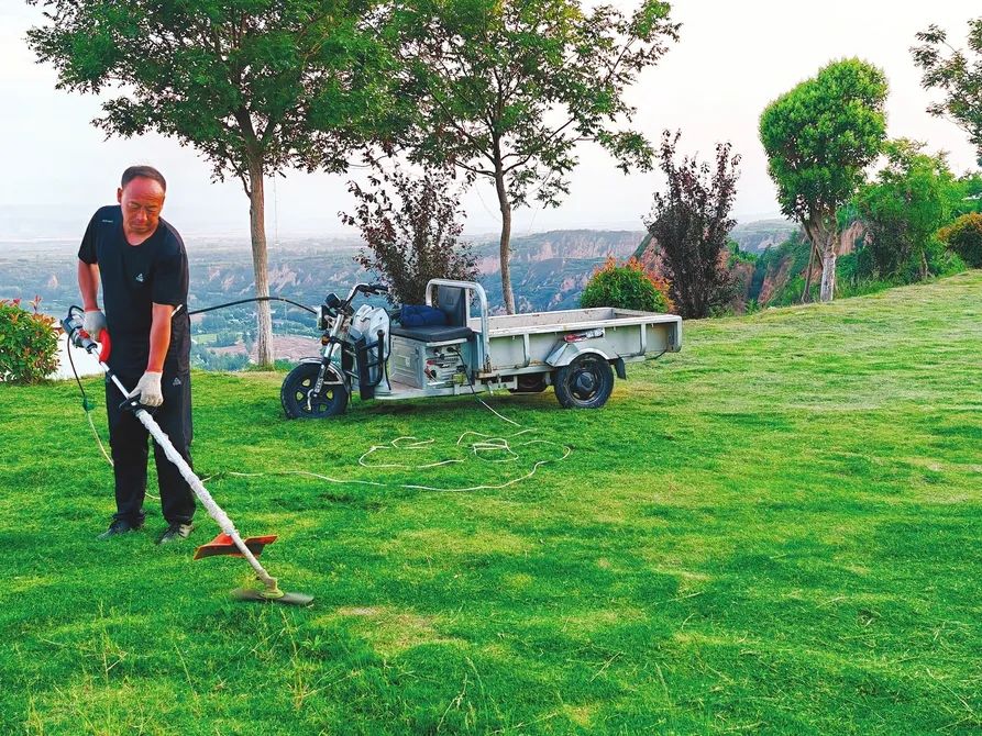 村民所用的除草机边工作边用直流电充电(资料图)。上世纪八十年代,庄上村村民陆续搬出崖边的窑洞旧宅,迁至村庄北侧台塬,遗留下来的百余孔窑洞几近坍塌,崖下大面积坡地林木遭到砍伐,以致“野蒿满地,杂草横生,桑拓萧然,满目疮痍”。陈文波团队就将这些窑洞进行修缮,打造成光伏庭院;把村里的荒坡荒地改造成光伏廊道。同时,还对村庄东西2公里河水冲刷断崖处及荒坡进行生态环境治理,美化、亮化、绿化面积达80余万平方米。对村里的光伏发展前景陈文波信心满满:“仅村里的光伏庭院和光伏长廊就有400千瓦,能产生50万千瓦时电,可满足庄上村全村村民的全年用电量,所以农村的分布式光伏大有可为。”