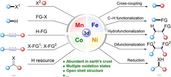 -Earth-Abundant Metal Catalysts. Transition-metal catalysts are mainly based on unsustainable resources, rare and precious metals, making the development of earth-abundant transition-metal catalysts to replace rare and precious metal catalysts of great scientific and practical importance. In this mini-review, Zhan Lu (陆展), Congyang Wang (王从洋), Shaolin Zhu (朱少林), Shou-Fei Zhu (朱守非), and coworkers summarize recent advances in Mn, Fe, Co, Ni-catalyzed organic reactions and discuss their future development.