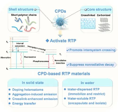 -Carbonized Polymer Dots. As a new class of luminescent nanomaterials, carbon dots have received considerable attention because they have low toxicity, are environment-friendly, and are easy to synthesize. Carbonized polymer dots are emerging as a new way to fabricate carbon dots. In this mini-review, Bai Yang (杨柏) and coworkers summarize the current progress and perspectives of carbonized polymer dots for room-temperature phosphorescent materials.