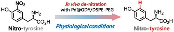 -Artificial Nanocatalysts. The direct cleavage of C–NO2 bonds for reductive denitration of nitroarenes remains a challenging transformation in synthetic organic chemistry. Fengting Lv (吕凤婷), Yuliang Li (李玉良), Shu Wang (王树), and coworkers report a biocompatible palladium-deposited graphdiyne nanocatalyst that can catalyze reductive denitration of nitroarenes under ambient physiological conditions.