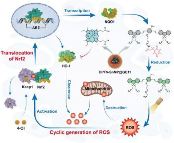 -Regulating Signal Pathways. Regulating antioxidative stress pathways to augment oxidative stress and enhance antitumor therapy is highly desirable but very challenging. Yanli Tang (唐艳丽) and coworkers develop a multifunctional nanoparticle to regulate the Keap1-Nrf2 antioxidative stress pathway to promote cancer cell apoptosis. Their work demonstrates a new way to achieve high anticancer efficiency by regulating signal pathways.
