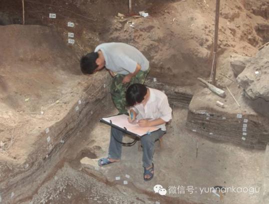 现场绘制剖面图2011年11月至2012年5月云南省考古所会同西双版纳州文物管理所、景洪市文化馆对娜咪囡洞穴遗址靠西位置剖面进行发掘,发掘面积15平方米;2012年11月至2013年5月又对第一次发掘的剖面重新进行了细致的清理。全部发掘物均经过干筛,分选的收集物除大量石、骨、角、蚌制品及少量陶片外,还包括大量植物种子、植物碎片、无脊椎动物(螺类、蚌类)以及脊椎动物(鱼、两栖、爬行、哺乳类)骨骼。第二次发掘取得重大发掘成果,主要包括以下几个方面: