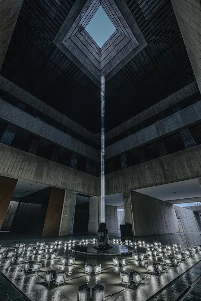 © YuChen Chao Photography建筑师设计了一座由一堆重叠倾斜墙组成的建筑。为了让永恒之丘更显通透,建筑团队更设计了台湾纳骨塔唯一的”天井“设计,光线从天井射入,温暖的天光环境下减弱了人们面对死亡的恐惧,增添了温馨感,希望创造一个让人们无论在经历什么情况都能感到舒适的空间。