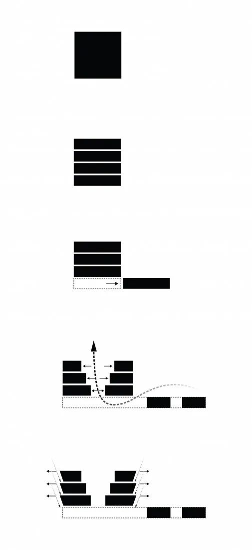 墙是构成距离感的元素。在这种情况下,通过以不同的角度倾斜墙壁,会产生一种它逐渐离开悼念者的视觉效果。这些墙创造了离开的距离,而不是分离。