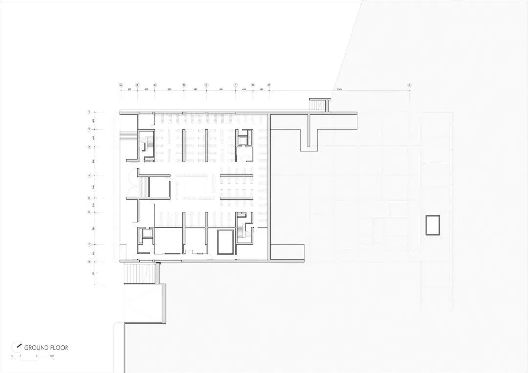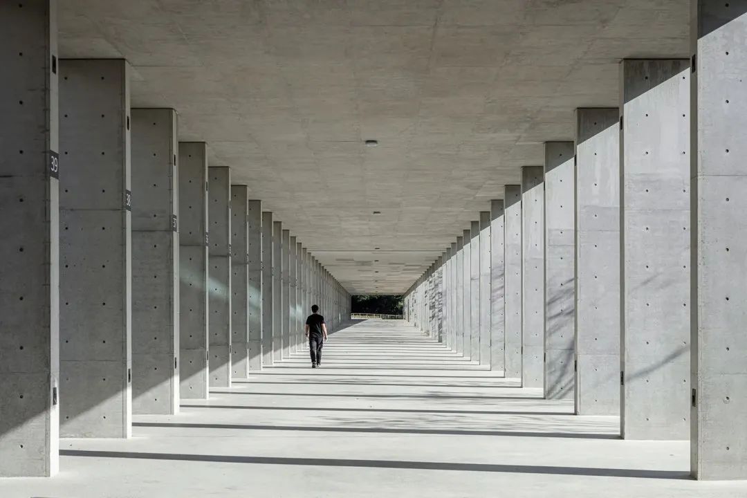 © YuChen Chao Photography159米的凉廊在旧墓地建筑和新建筑之间建立了联系,为前来哀悼的人们创造了一个相遇和聚集的场所。柱廊投射出一条阴凉的长廊,内有供奉位和一条走廊,通向骨灰安置所所在的人工高地。