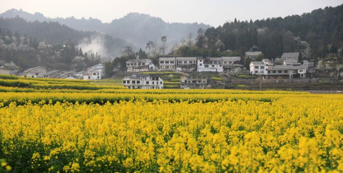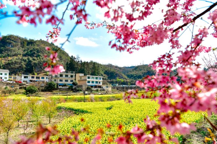 正是百花湖镇和朱昌镇油菜花、百花湖镇樱花花开之际