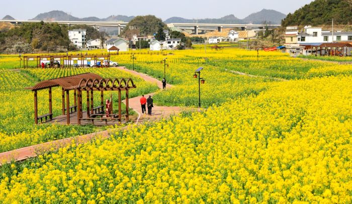 出行方式:下麦城村油菜花分布于布依村寨周围,前往观赏油菜花海,可导航“百花湖镇下麦城村”,从观山湖区出发,车程约21公里,耗时约40分钟。