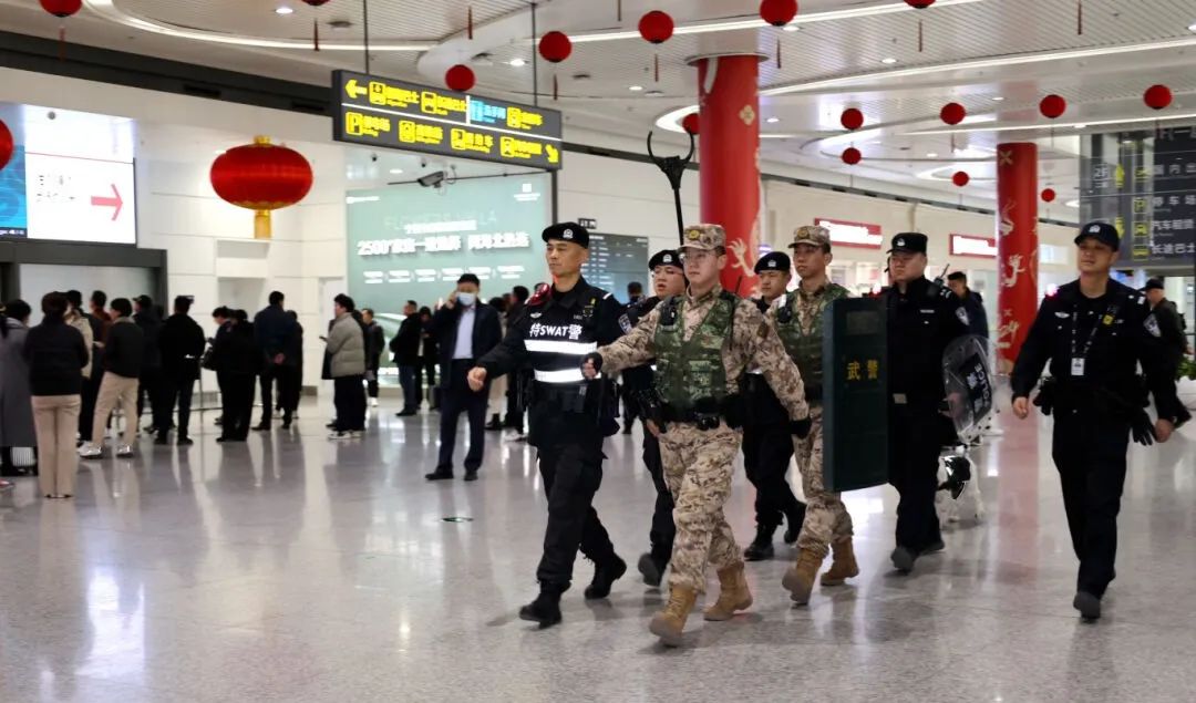 强化巡查防控,确保治安秩序持续平稳。春运期间,机场公安切实加强辖区社会面整体防控,日均投入警力75人次,组织群防群治力量1400余人次,结合航班波峰推动机关警力下沉一线。持续加大对涉民航违法犯罪打击整治力度,全面强化航站楼重点区域和人员密集部位“三警”武装巡逻防控。坚持“安全隐患零容忍”,全力推动安全隐患动态清零,有力维护良好的治安秩序,确保机场运行持续平稳。