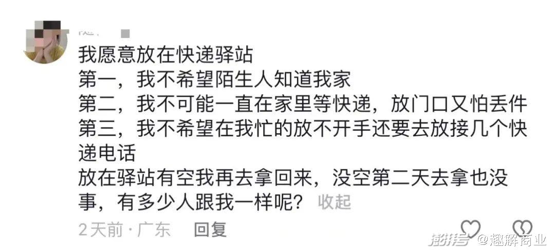 与李睿有类似想法的人不在少数,在社交平台相关话题的评论区,有不少网友觉得“驿站”“快递柜”更方便。