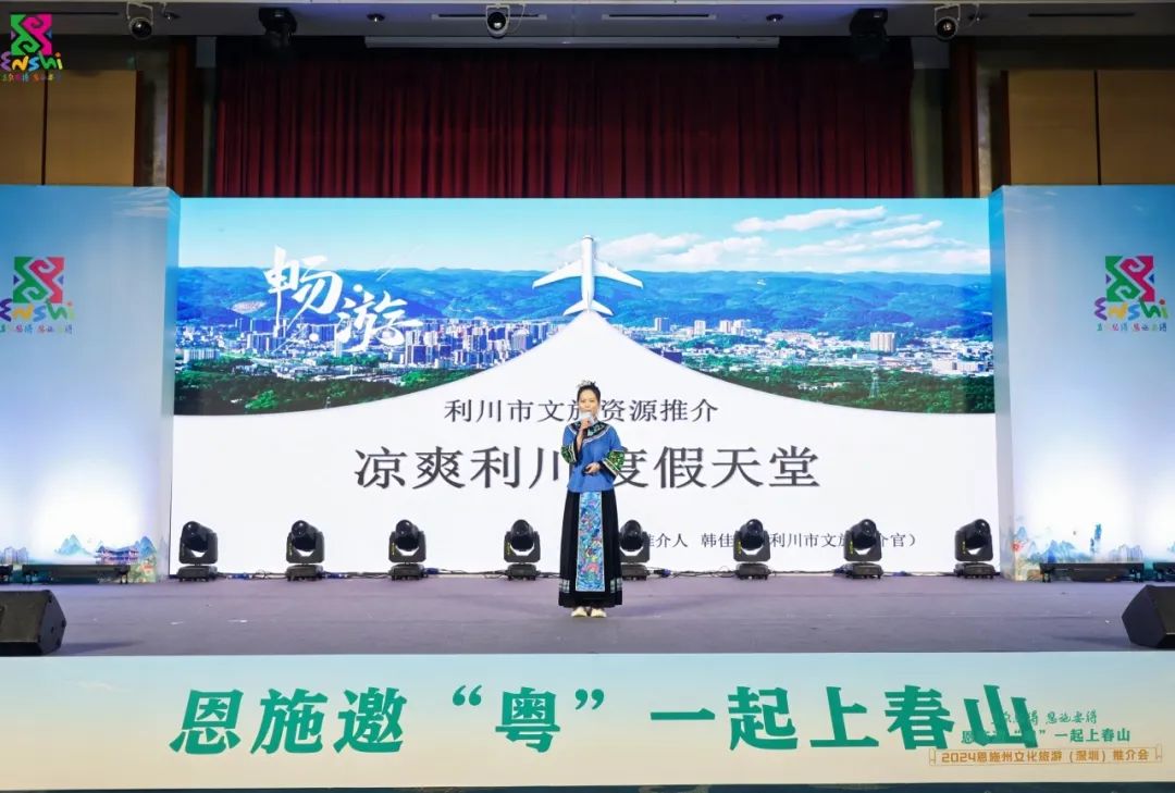 州文旅局进行现场推介多维推介,展示大美恩施文旅风华。推介会以“旅游资源推广+市县城市推介+文艺表演+展览展示”等多元形式,完美呈现恩施文旅姿彩与魅力。推介会现场,州文旅局、利川市等四个市县、恩施旅游集团进行了精彩推介,集中展示了恩施州丰富的文旅资源、厚重的文化底蕴、优良的生态环境,与会人员纷纷点赞、反响热烈。
