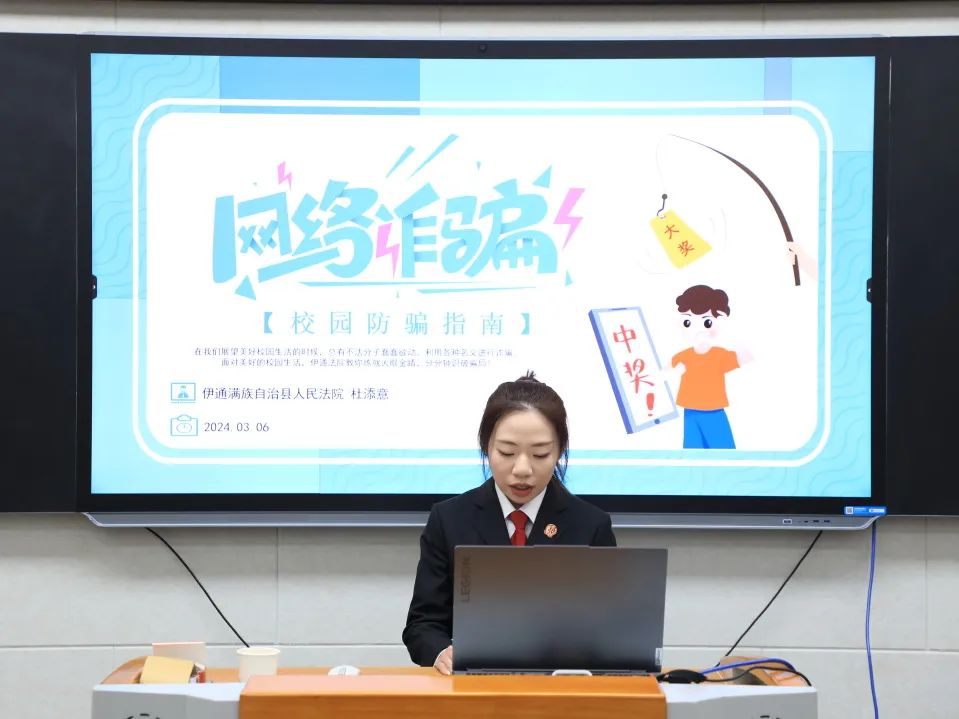 法官助理通过讲解真实案例、普及相关法律知识,引导青少年掌握识别各类电信网络诈骗的基本技巧,学会如何妥善保管个人信息、正确处理异常来电或遇到疑似诈骗情况时及时求助等。同时提醒未成年人不要出租、出售、出借手机卡、银行卡、社交账号等,呼吁同学们抵制各种不良行为和违法犯罪行为的引诱、侵害,必要时拿起法律武器维护自身的合法权益。通过现场互动的方式,以案释法、寓教于乐,教育引导学生们增强防范意识,树立法治观念。做到不听、不信、不转账、不汇款,遇到可疑情况第一时间向家长和老师汇报,一旦发现被骗及时报警,提高自身防范电信网络诈骗的意识和能力。