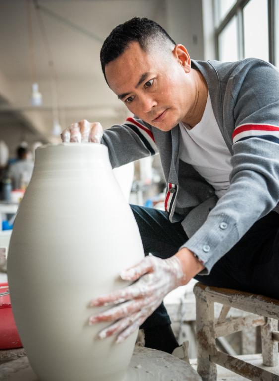 刘文斌制作陶瓷。(作者供图)作为景德镇陶瓷大学陶瓷文化高等研究院教授,刘文斌主动承担起陶瓷文化“传帮带”的责任,授艺培养技术型人才56人。积极参与全省“百千万人才”培养实施活动,成功入选省“双千计划”领军人才、国家百千万人才工程等,被授予“有突出贡献中青年专家”荣誉称号。