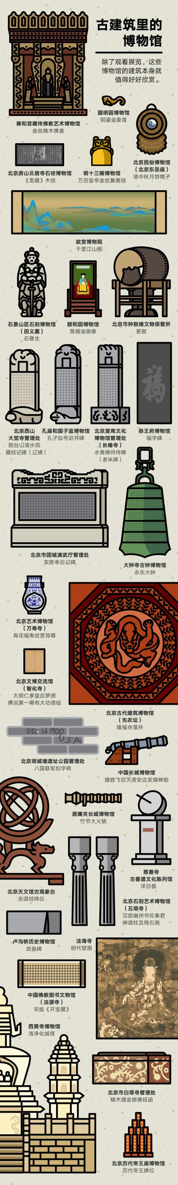 这个数字只包含截至2023年底在北京市文物局备案且实际现存的博物馆(210家)和类博物馆*(30家),但已经很可观了!即便你是一位资深博物馆爱好者,也几乎不可能把它们走全。所以我们计划用这篇文章,带你——哪怕是浅尝辄止地——看遍北京所有的博物馆。(*“类博物馆”指在一定程度上具有博物馆收藏、展示和教育等性质与功能的特色场馆)