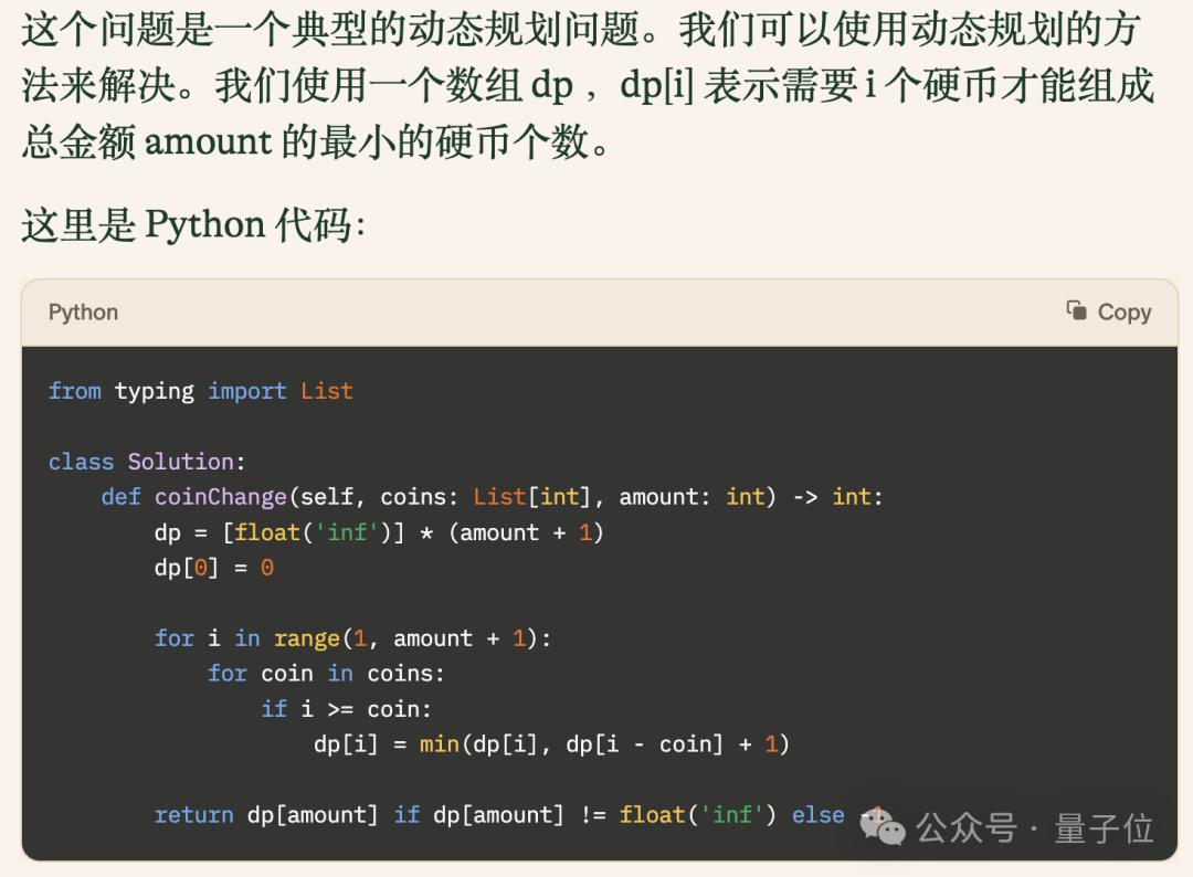 两道问题过后,虽然没有出现什么戏剧性效果,但看起来对中文也是有一定的理解了。接下来就重点看看官方宣称“尤其擅长”的数学和代码能力。
