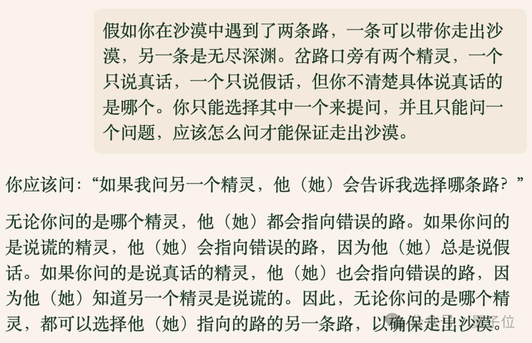 当然要想数学好,逻辑思维是必不可少的,所以我们在常规的数学题之外,又用一道经典的题目考验了一下的Pi逻辑思维,结果还不错。