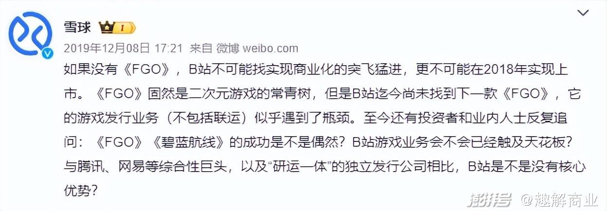 然而,紧接着B站就面临了一个问题,营收过于依赖《FGO》,而且严格来说《FGO》也不是归属于B站,所以门槛低、风险高就成了大问题,于是B站立马开始了漫长的“破圈”之路。