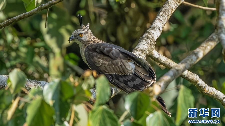 林间进食的褐冠鹃隼(2月17日摄)。新华网发(朱边勇 摄)去冬今春,云南越冬候鸟种群数量增加,并出现了一些新物种;