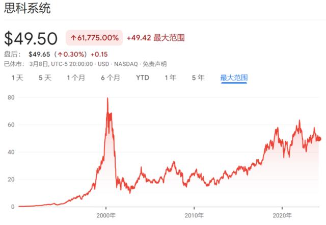 到2000年3月互联网泡沫顶峰时,思科股价反弹了71倍,但泡沫破裂后的几年内暴跌约90%,此后一直未能回到互联网泡沫巅峰时期。今天,英伟达就是那家公司。