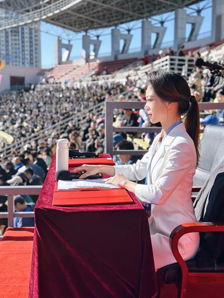 伊春市融媒体中心主持人 周璇2023年9月20日,第十二届全民健身运动会上,周璇克服困难,以最饱满的热情向全市人民播报大会盛况,用声音传递了全民健身的丰硕成果。