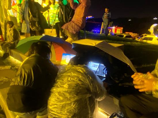 黑河日报社记者 关欣、肖爽2023年6月20日,第十三届中俄文化大集开幕式现场,关欣、肖爽为了缩短采制时间,选择在现场进行新媒体报道编辑,她们身着湿淋淋的衣服,在风雨中坚守到深夜。