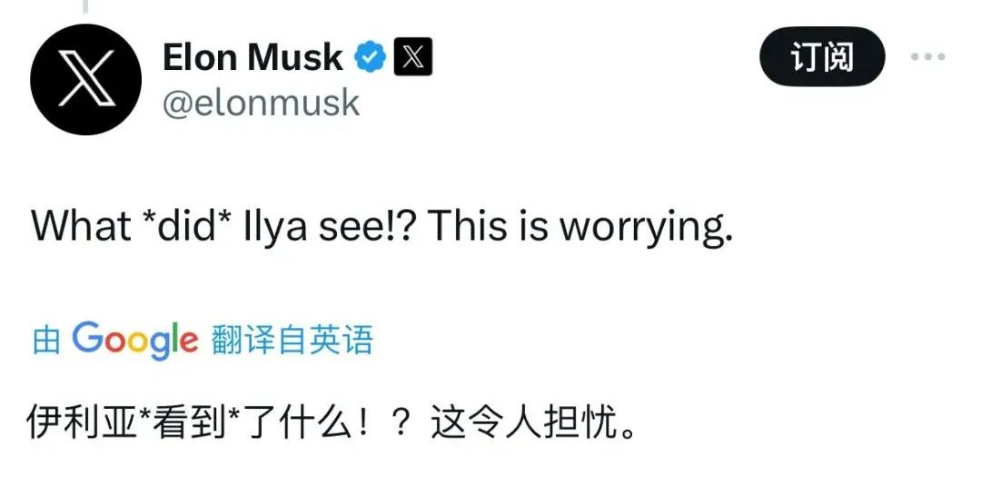 但可以肯定是,现阶段AGI的发展还不存在能够威胁人类的安全问题,至少没有马斯克所担忧的Ilya看到的风险。