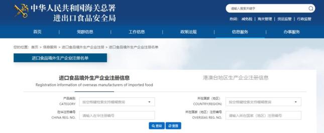 登录海关总署网站查看相关食品生产企业是否获准注册: