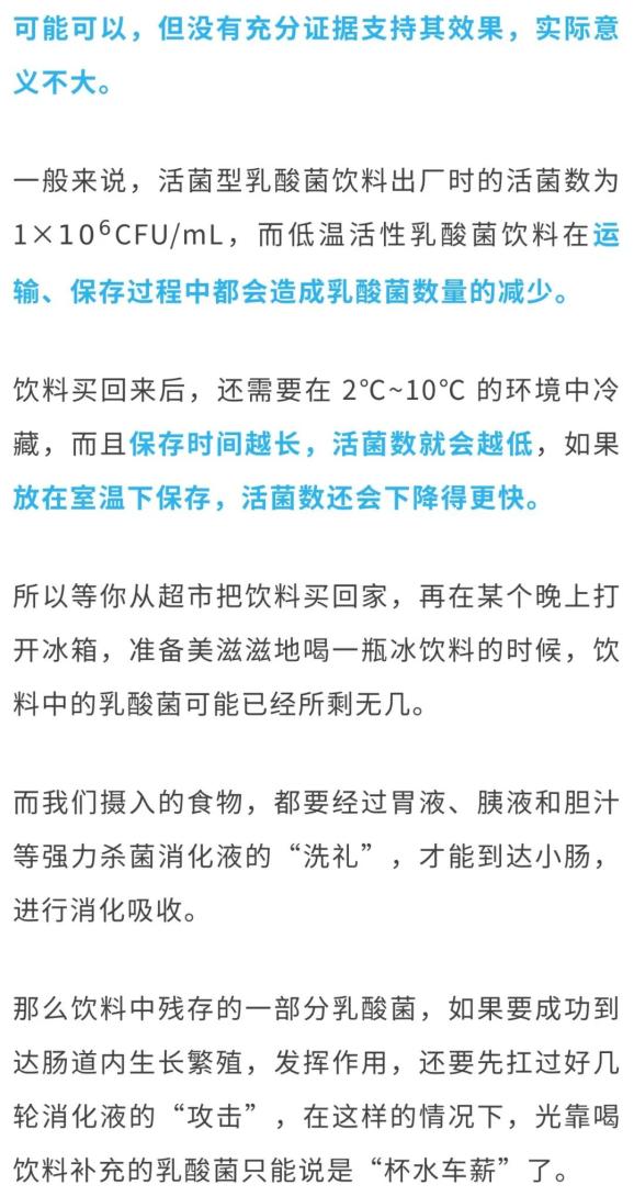 最后,不推荐大家日常大量饮用乳酸菌饮料,也不建议将乳酸菌饮料当成一种“保健饮品”。