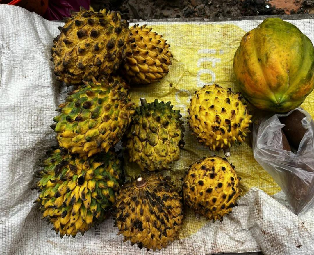 在热带雨林地区,我还发现了另一种形态的释迦。它长得黄而多刺,个头儿也明显大了不少。不过味道很甜,被当地人称为树上的冰淇淋。