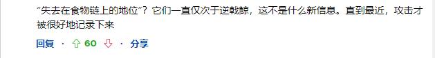 网友最先质疑的是大白鲨顶级捕食者的地位: