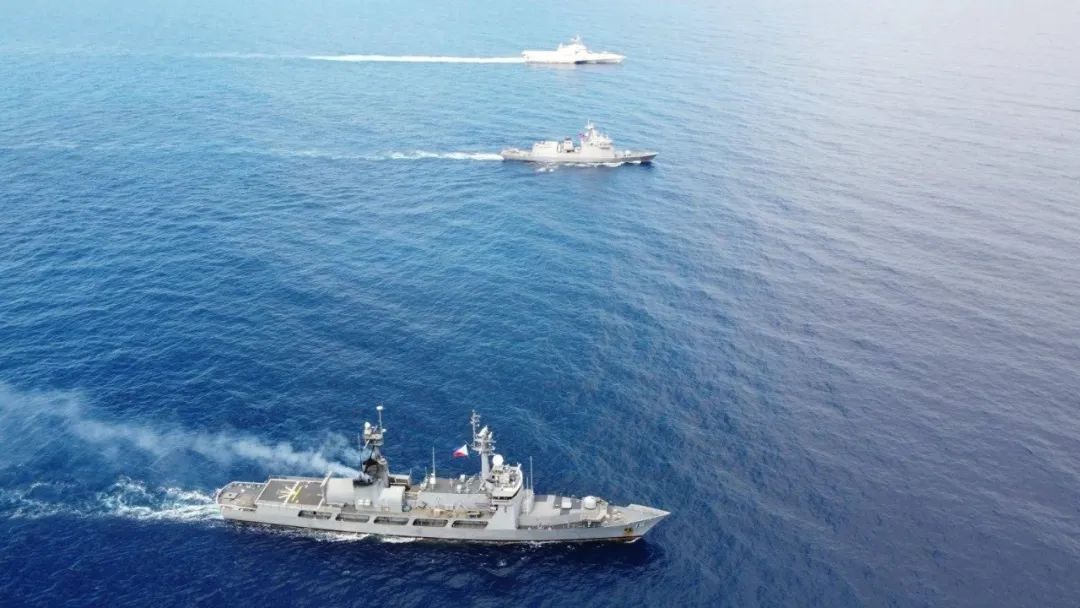 ▲2023年11月,菲律宾和美国军舰在南海海域举行联合巡航。舆论上,美国智库“妙手计划”“海上反暴力项目”层出不穷,在社交媒体上极力污蔑中国“破坏南海现状”“威胁地区安全”,翻炒“中国活动破坏南海珊瑚礁”等早已被扫进故纸堆的谣言。