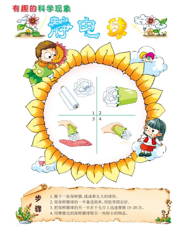 原理保鲜膜球和干燥的毛巾摩擦产生了静电,当带有静电的保鲜膜球接近物体时,物体会被吸附。