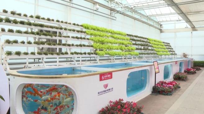 与传统蔬菜种植不同,在这里,气雾栽培、鱼菜共生展现了当下智慧化农业的新场景。气雾栽培利用喷雾装置将营养液雾化为雾滴状,能直接喷到蔬菜的根系上以提供植物生长所需的水分和养分;鱼菜共生将水池里的鱼粪转化成有机肥,顺着管道流进蔬菜的地界,这样一来,既可使蔬菜在水中的根系吸饱营养物质,又可使鱼的生存环境得到改善。