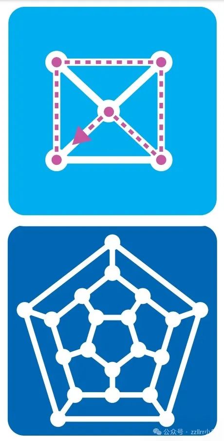 第3题,是一笔画问题(上面部分是示例,下面部分是题目),要求在图中画出一条路径,经过每一个顶点(哈密顿路径,首尾相接时称为哈密顿回路)。注意本题的一笔画并不要求经过每一条边(此时称为欧拉路径),因为不满足欧拉路径的条件,想画也画不出来,不信可以试一试。
