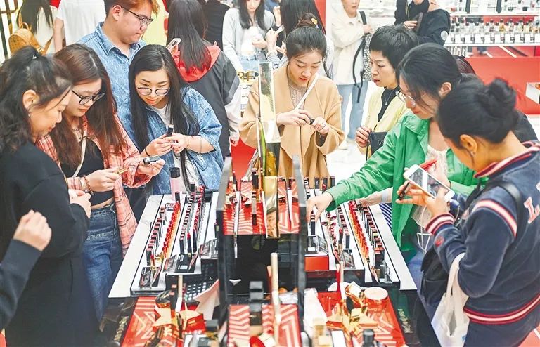 资料图:海南离岛免税吸引游客前来购物打卡。据海口海关统计——