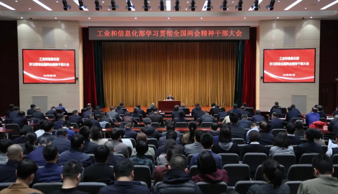 3月12日,工业和信息化部党组书记、部长金壮龙主持召开干部大会,传达学习贯彻习近平总书记重要讲话精神和全国两会精神,研究部署贯彻落实举措。部领导王江平、叶民、徐晓兰、张云明、单忠德、谢远生、赵志国、高东升出席会议。