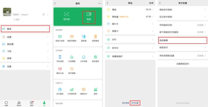 微信:打开微信,依次点击“我”→“服务”→“钱包”→“支付设置”→“自动续费”,选择关闭自动续费。