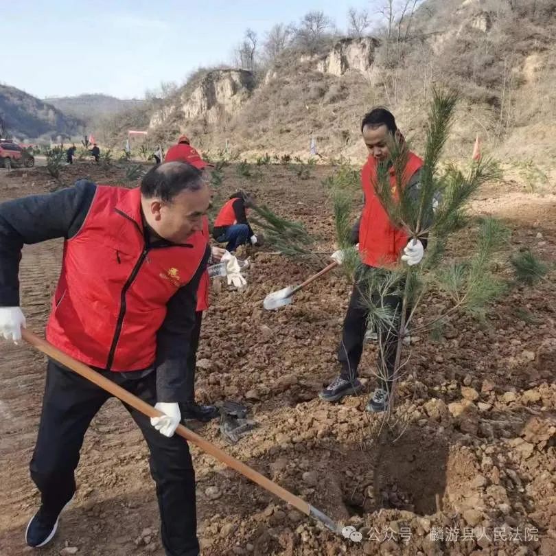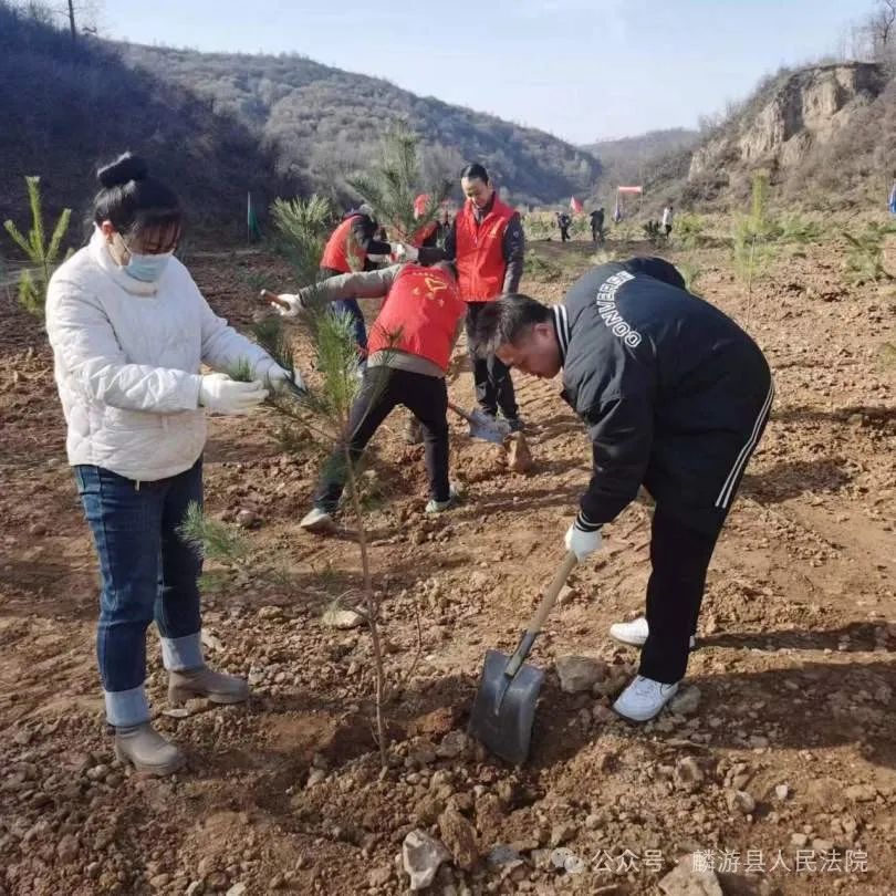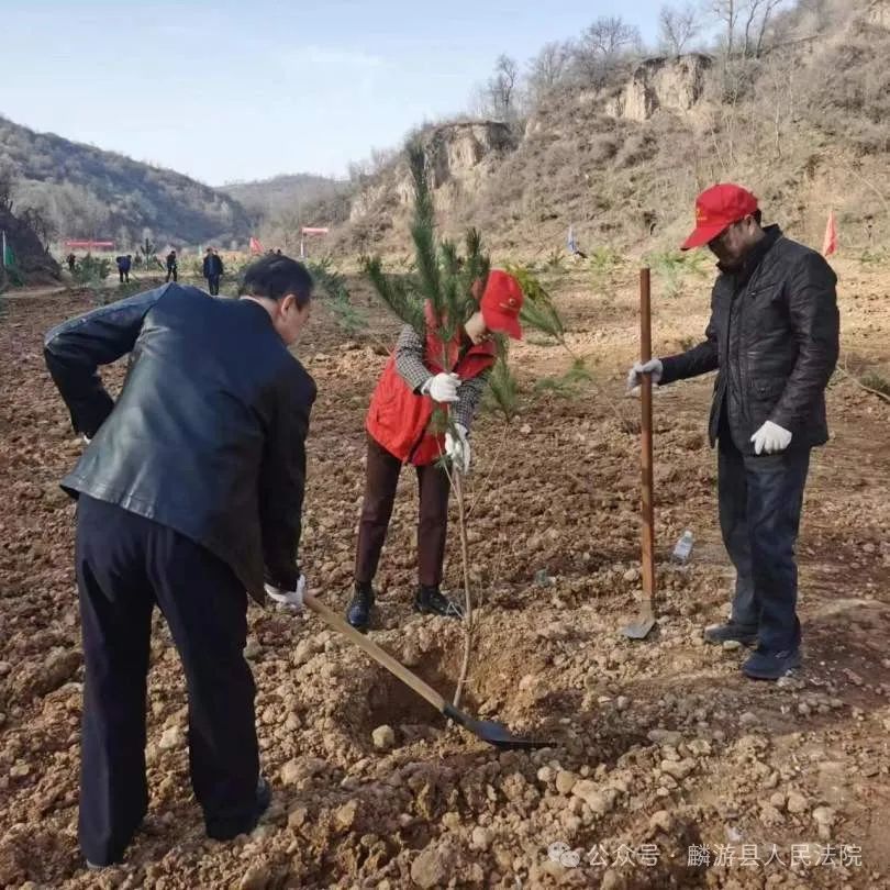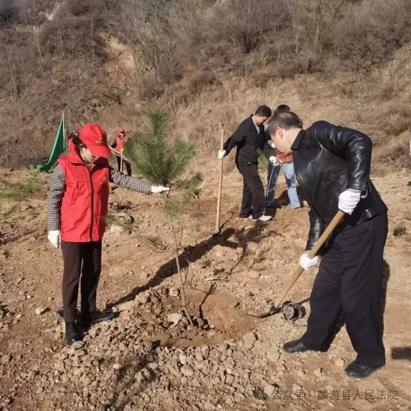 义务植树主题党日活动阳春三月万物苏,植树添绿正当时。3月12日,在第46个植树节来临之际,麟游法院党支部组织党员法官干警前往九成宫镇澄铭窑村县北组塔寺沟开展义务植树主题党日活动,用实际行动为美丽麟游增添一抹绿色。