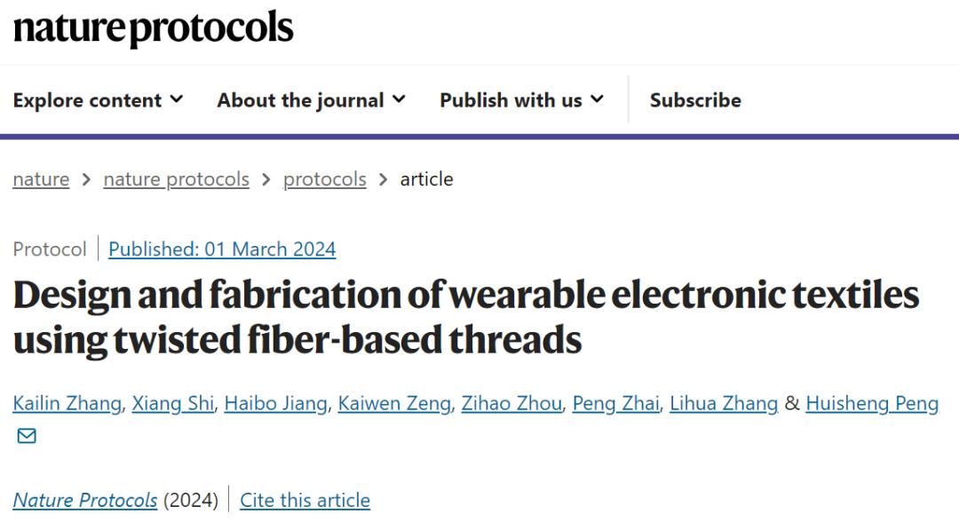 相关研究成果以“Design and fabrication of wearable electronic textiles using twisted fiber-based threads”为题,3月1日发表于《Nature Protocols》。