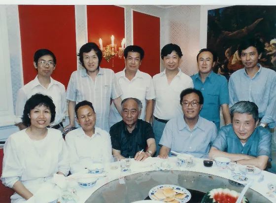 史铁生和北京作家(陈希米提供)。1980年代,北京