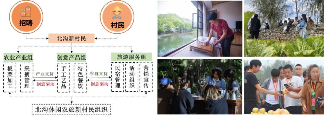对于北沟这样具有较好资源禀赋的村庄,项目组希望在规划中提前应对村庄凋敝、活力丧失的风险。从针对宅、林和人力三大资源的深入盘整入手,提出以房养老、民宿运营、林场回收、非建设空间再激活等村庄资产增值活化策略;同时积极引进外部资源、构建共管机制、促进人才回流,形成以村集体为核心的组织机制,协调各方利益、避免村庄过度商业化。