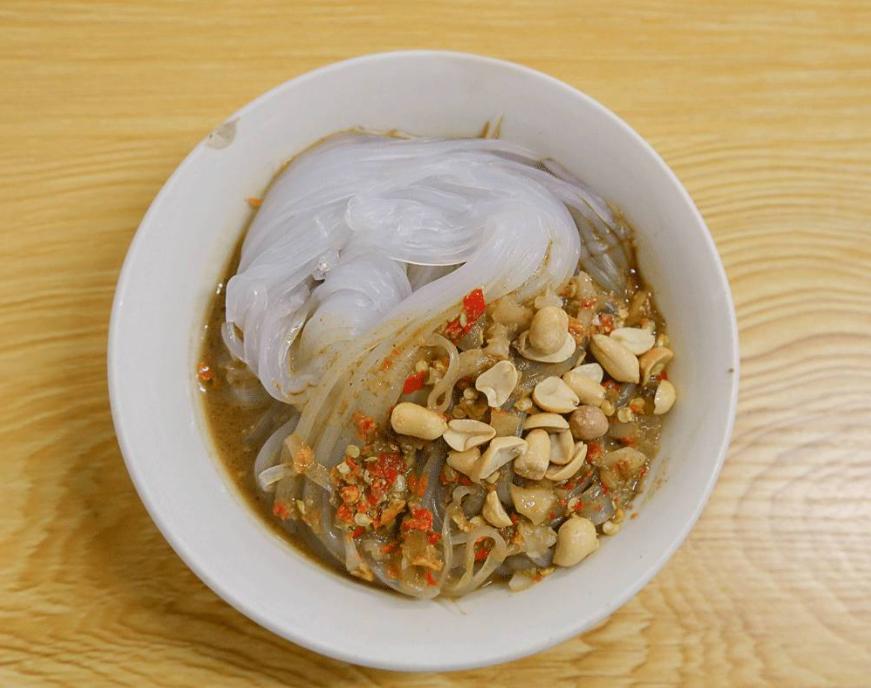 边吃边去旁边的“丹丹热卤店”买上一碗猪油拌粉,糯叽叽的米粉和香辣的豆角碎末夹杂着猪油的香气,一筷下去,唇齿留香!