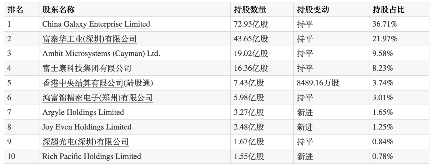 工业富联3月14日披露前十大股东最新持股情况显示,截至2023年12月31日,与最近定期报告持股数相比,本期共有1个股东持股数量发生变动,3个股东新进为前十大股东。