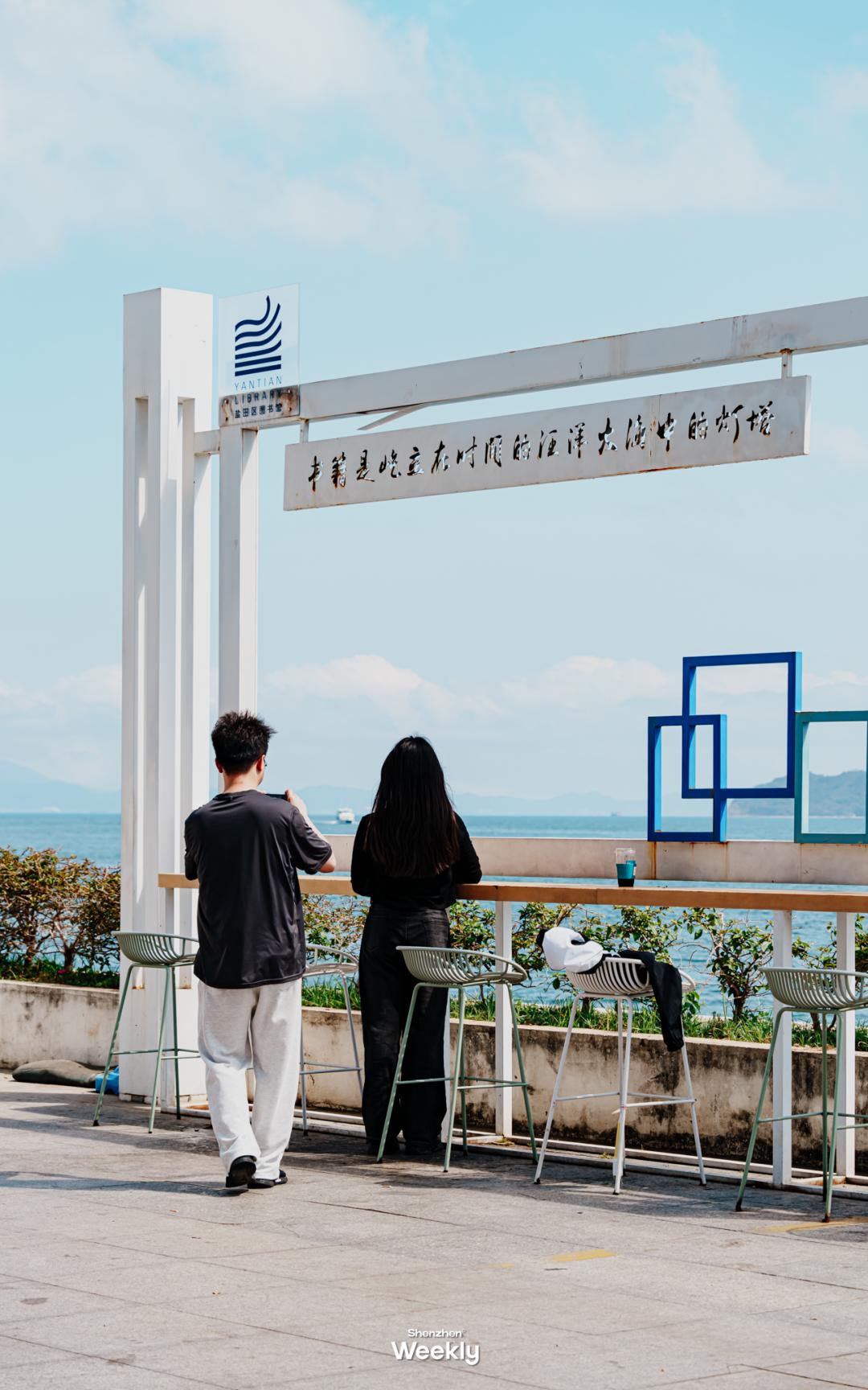 它是深圳离海边最近的图书馆整栋建筑的造型如灯塔一般