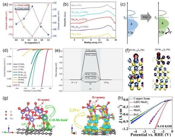 图2. HCD电解水低维催化剂设计策略高活性的催化剂表面和反应物分子之间需要有合适的作用强度。为了调控这两者之间的作用强度,可以采用电荷态调控(图3)、应变工程(图4)等策略来调节催化剂材料的表面化学特性。