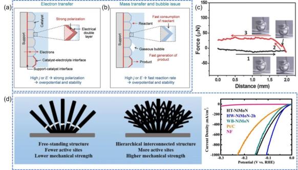 根据基本原理,提出设计HCD全解水体系需要综合考虑催化剂的形貌/结构、电极表面化学以及催化剂和电解质的相互作用(图1)。