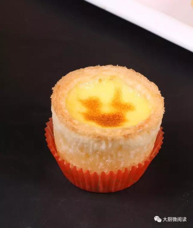 蛋挞完美代言了烘这一技法。这款蛋挞较之普通出品更有亮点:将蛋挞酥皮摁入高桶盏内,灌入蛋挞液烘烤之后,高约5厘米,蛋挞心格外“深邃”,上层焦香,而底层则非常滑嫩。制作流程: